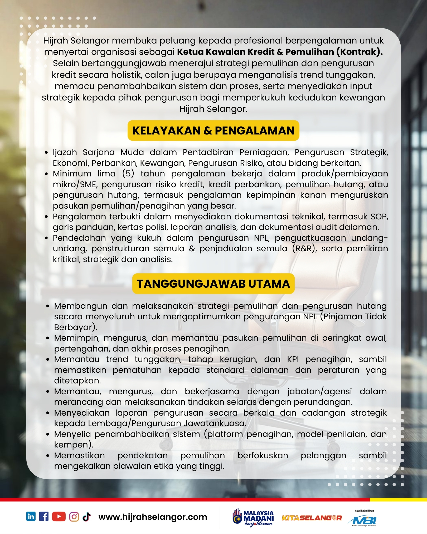 Nama Jawatan : Ketua Kawalan Kredit & Pemulihan